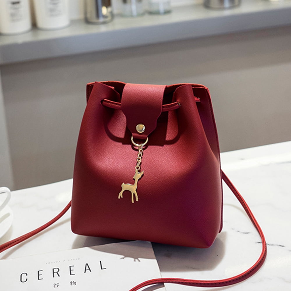 Versatile Bucket Shoulder Bag Anti Theft Bucket Bag With Sweet Pendant For Mobile Phone Cosmetics Keychain Red Walmart Com