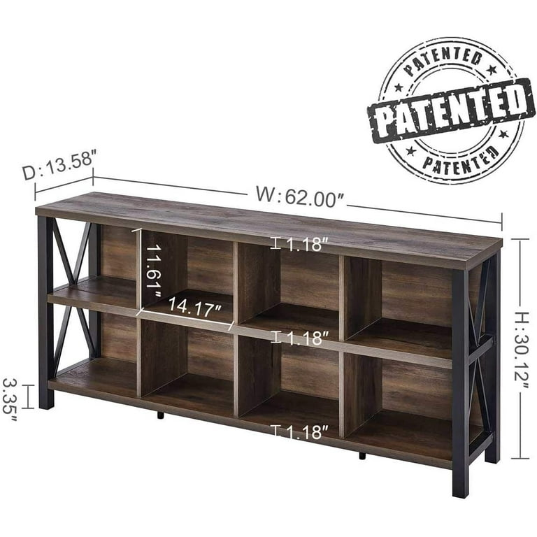 Yodudm 8 Cube Storage Organizer Bookshelf Rustic Wood Cubby Bookcase Industrial Horizontal Long Shelf For Living Room Walmart Com
